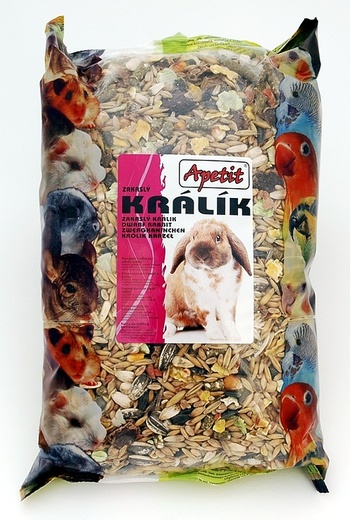 Kompletní krmivo pro zakrslé králíky.