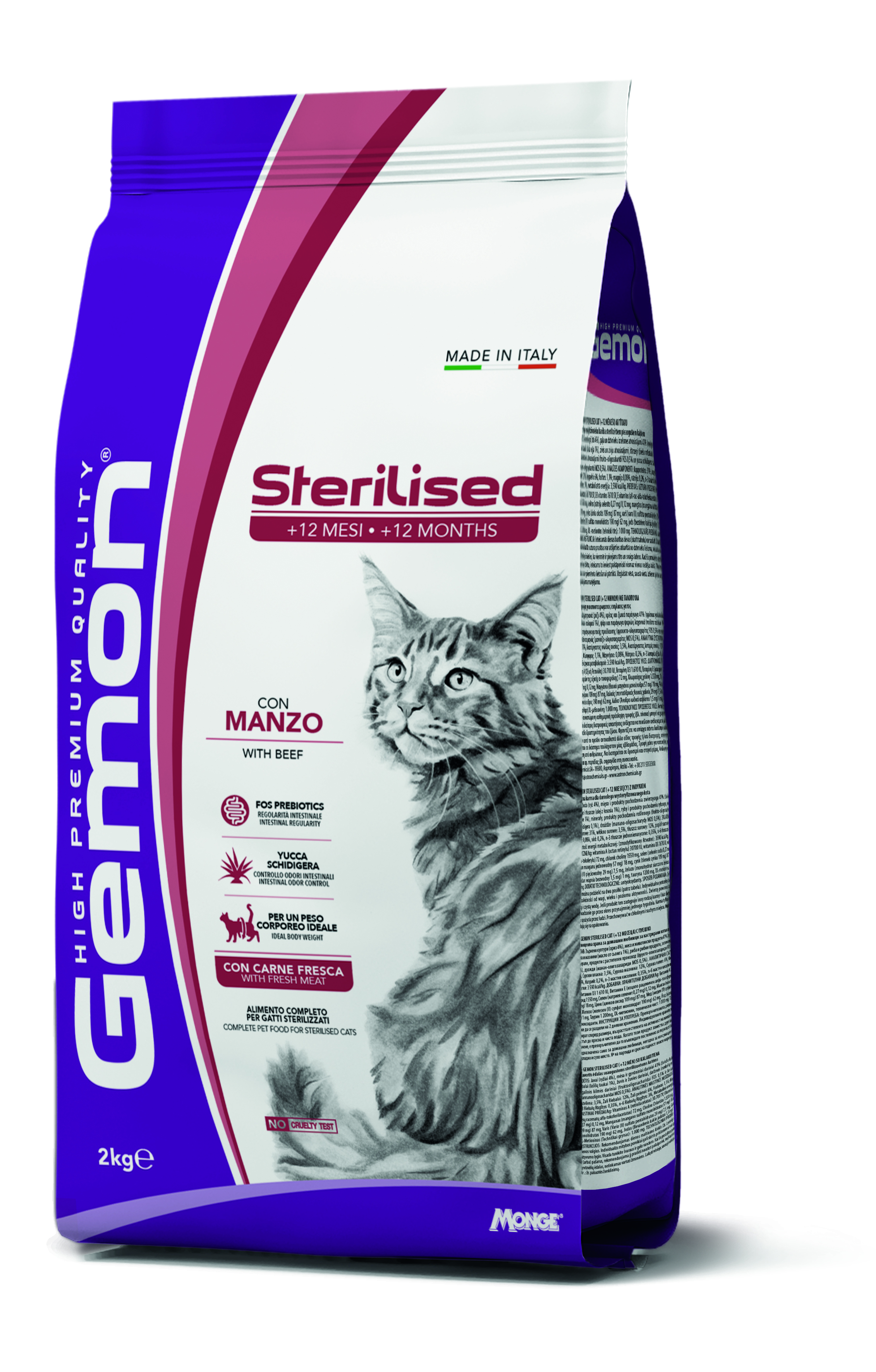 Kompletní krmivo pro sterilizované dospělé kočky. Receptura se vyznačuje vysoce kvalitními ingrediencemi a zdroji esenciálních živin, jako je hovězí maso, a zdroji sacharidů, jako je rýže, vařené a díky extruzi vysoce stravitelné. Ideální krmivo pro sterilizované kočky, vyrobené s fruktooligosacharidy (FOS) a mannan-oligosacharidy (MOS), což jsou prebiotika pro podporu zdraví střev, a s řepnou dužinou pro udržení ideální tělesné hmotnosti. Receptura obsahuje čerstvé maso pro optimální chutnost a lososový olej pro lesklou a měkkou srst. Obsahuje také juku schidigera pro omezení střevních pachů. Bez přidaných umělých barviv a konzervantů.