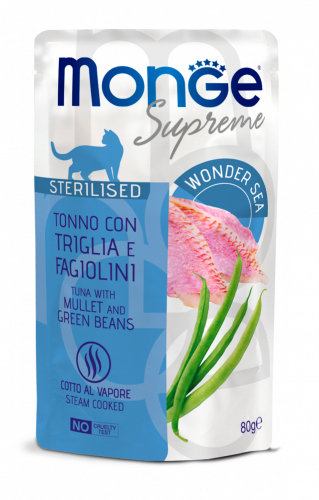 Monge Supreme Sterilised Cat Tuňák, parmice, zelené fazolky 80g