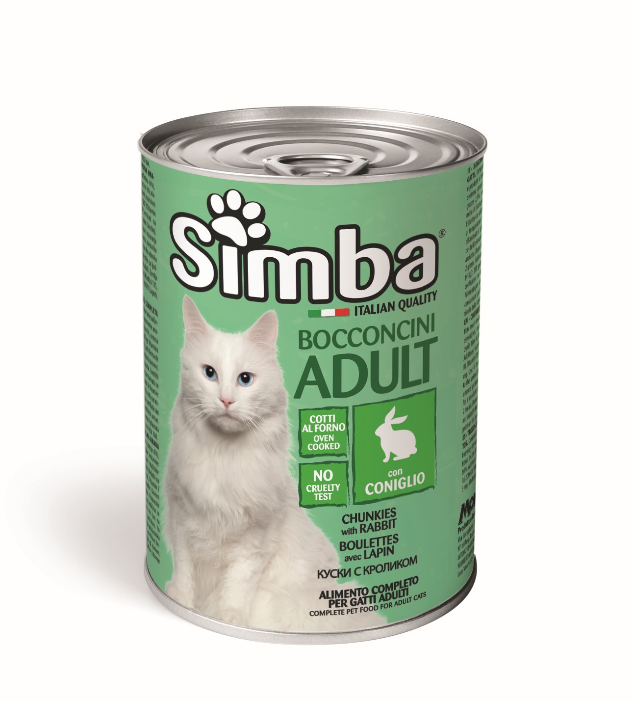 Simba Cat kousky s králičím masem je kompletní krmivo pro dospělé kočky. Kousky v omáčce připravené z kvalitních ingrediencí, jako je králičí maso, zdroj bílkovin a minerálů, se pečou v troubě, aby zvýraznily jejich přirozenou chuť a stimulovaly každodenní chuť k jídlu vašeho mazlíčka. Složení bylo vyvinuto se specifickou kombinací vitamínů A-D3-E, aby splnilo nutriční požadavky denní potřeby vašeho mazlíčka. Bez přidaných barviv a konzervačních látek.