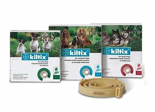 Kiltix proti blechám a klíšťatům. Obojek je účinný proti všem klíšťatům a jejich vývojovým stádiím, která napadají psy. Je plně účinný už 24 hodin po nasazení, je dlouhodobě účinný během celé sezóny klíšťat (7 měsíců), je nejdéle působícím obojkem proti blechám. Má výbornou lokální a celkovou snášenlivost, účinné látky zůstávají na srsti zvířete, nevstřebávají se do krve - žádné poškození ledvin nebo jater. Je použitelný u štěňátek od 3 měsíců věku.