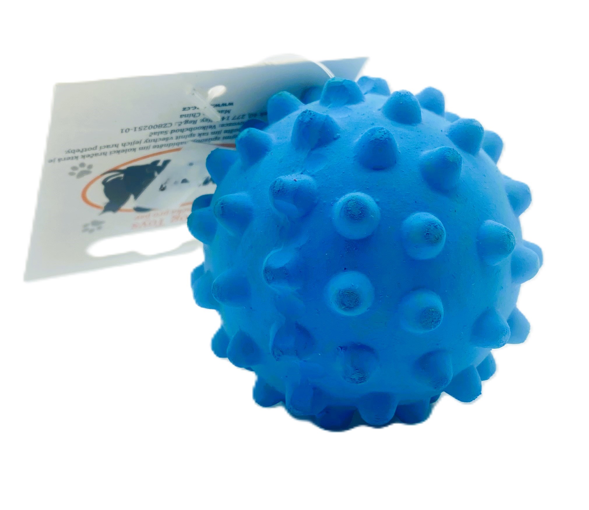Latexová hračka pro psy. Měkký míček s bodlinkami.