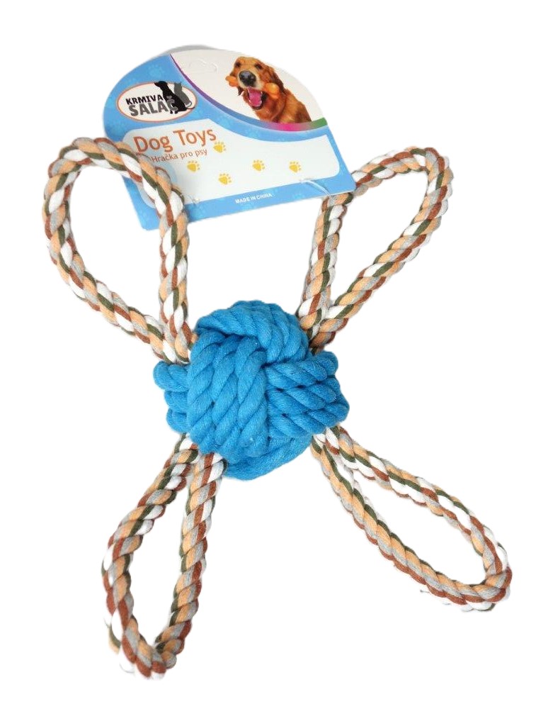 Bavlněné 4-stranné přetahovadlo pro psy s bavlněným míčkem (8cm) uprostřed