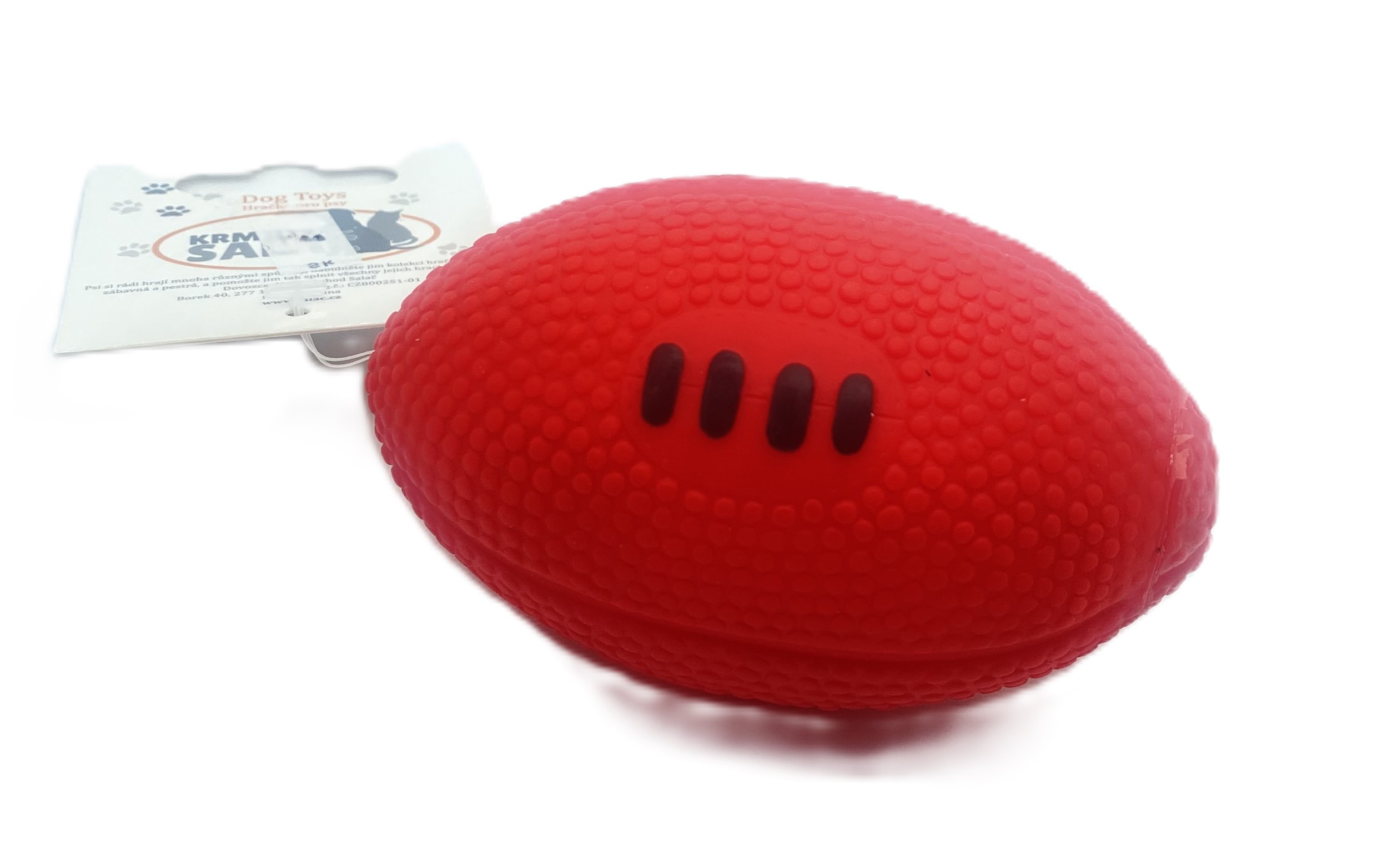 Pískací vinylová hračka pro malé psy - rugby míč.