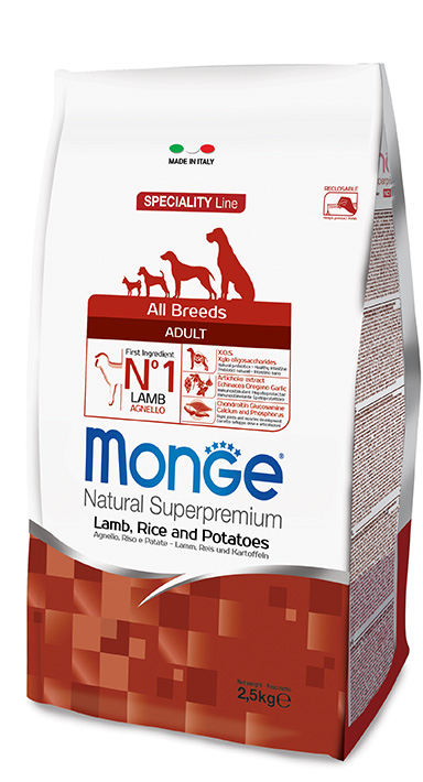 Jehněčí (sušené 28%, čerstvé maso 10%), rýže (15%), bramborová bílkovina (5%), živočišný tuk (99,5% čištěný kuřecí olej), kukuřice, sušená řepná dužina, pivovarské kvasnice, hydrolyzované živočišné proteiny(játra), minerály, droždí (mannan oligo 1% MOS sacharidů), xylo-oligosacharid (XOS 0,3%), yucca schidigera (0,3%), moučka z mořských řas (spirulina - Arthrospira platensis 0,3%), produkty získaní zpracování rostlin (kořen Echinacea purpurea 0,2%, Origanum Vulgare 0,1%), sušený česnek (0,2%), glukosamin (0,057%), síran chondroitinu (0,04%).