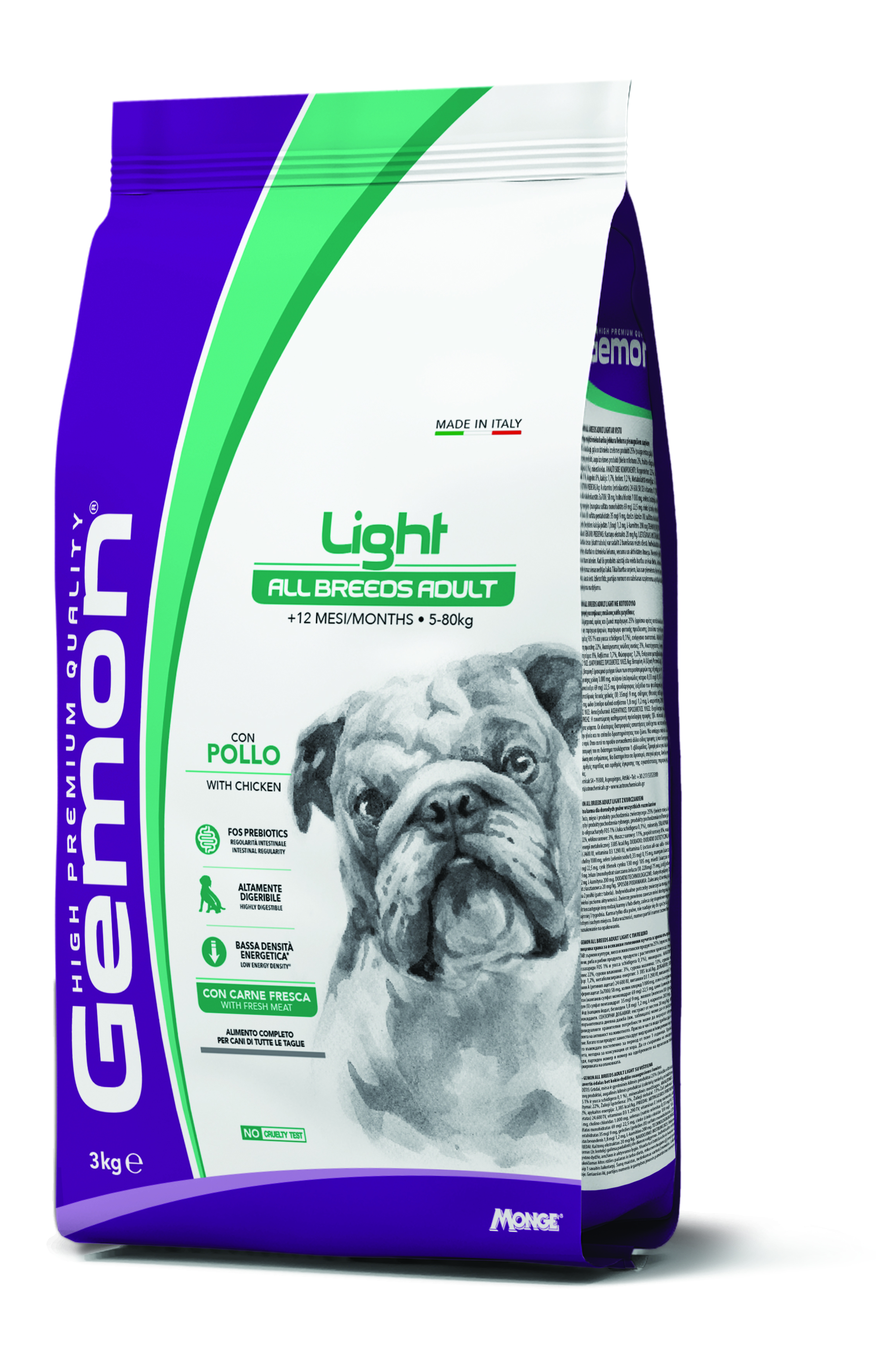 GEMON dog ADULT LIGHT CHICKEN - kompletní krmivo pro dospělé psy s nadváhou s čerstvým kuřecím masem