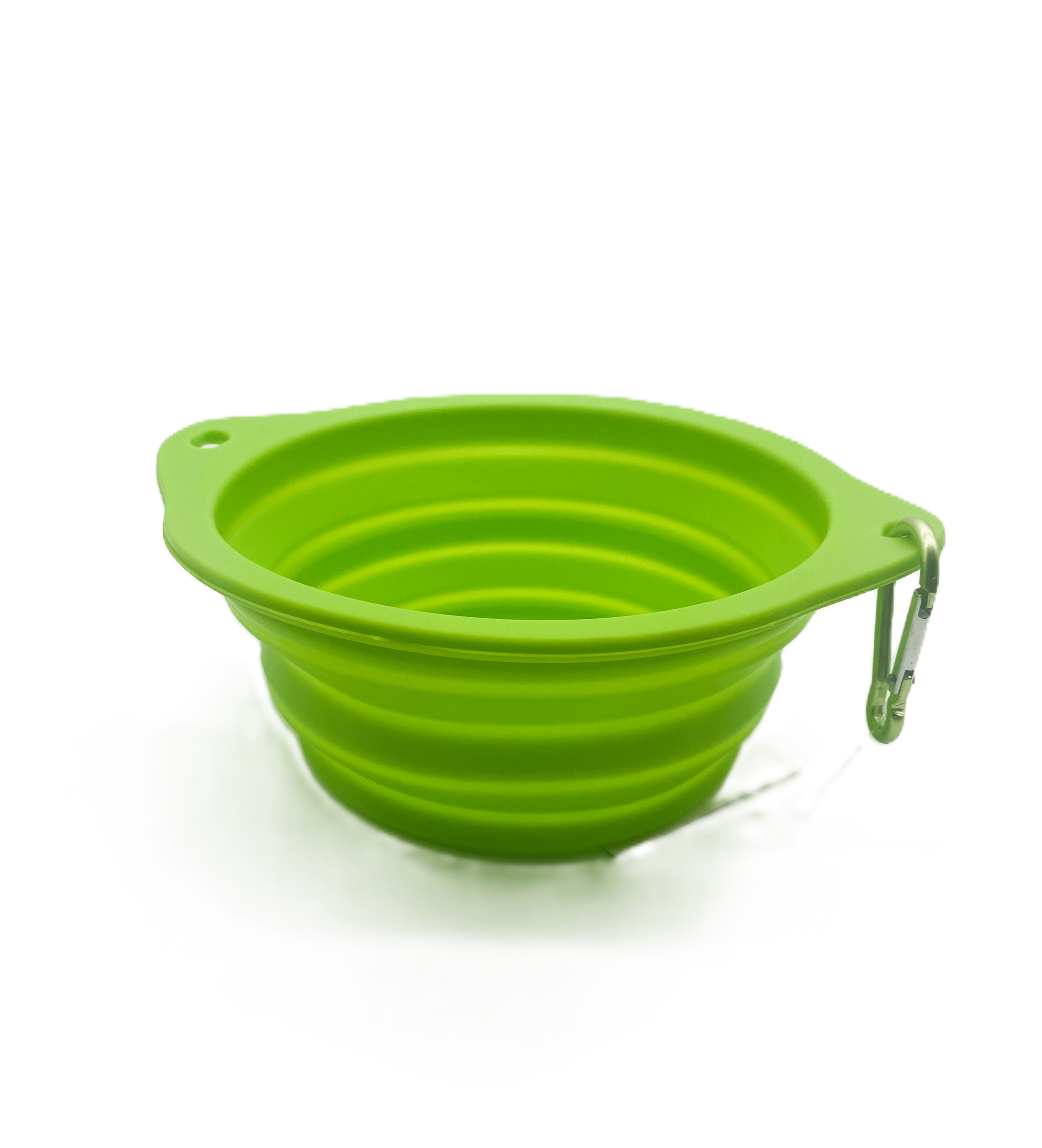 Skládací miska pro psy vyrobená z odolného materiálu. Ideální na cestování nebo procházky. Složená zabere jen velmi málo místa.