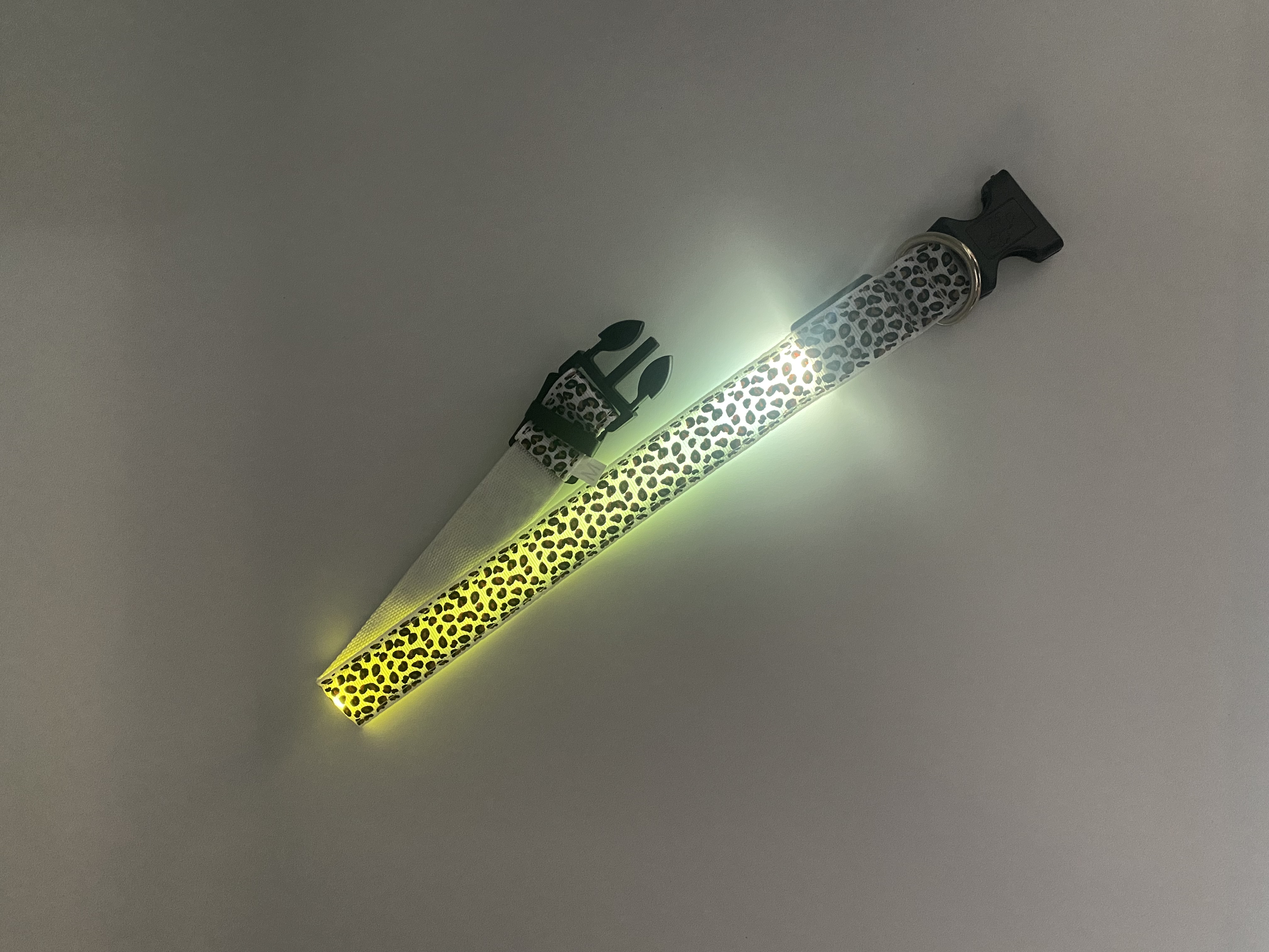 Obojek se světelným zdrojem ve formě LED zdroje. Zvyšuje bezpečnost vašeho miláčka při procházkách za snížených světelných podmínek. Maximální nastavitelná délka 63cm, minimální délka 36cm, šířka obojku 2,5cm.