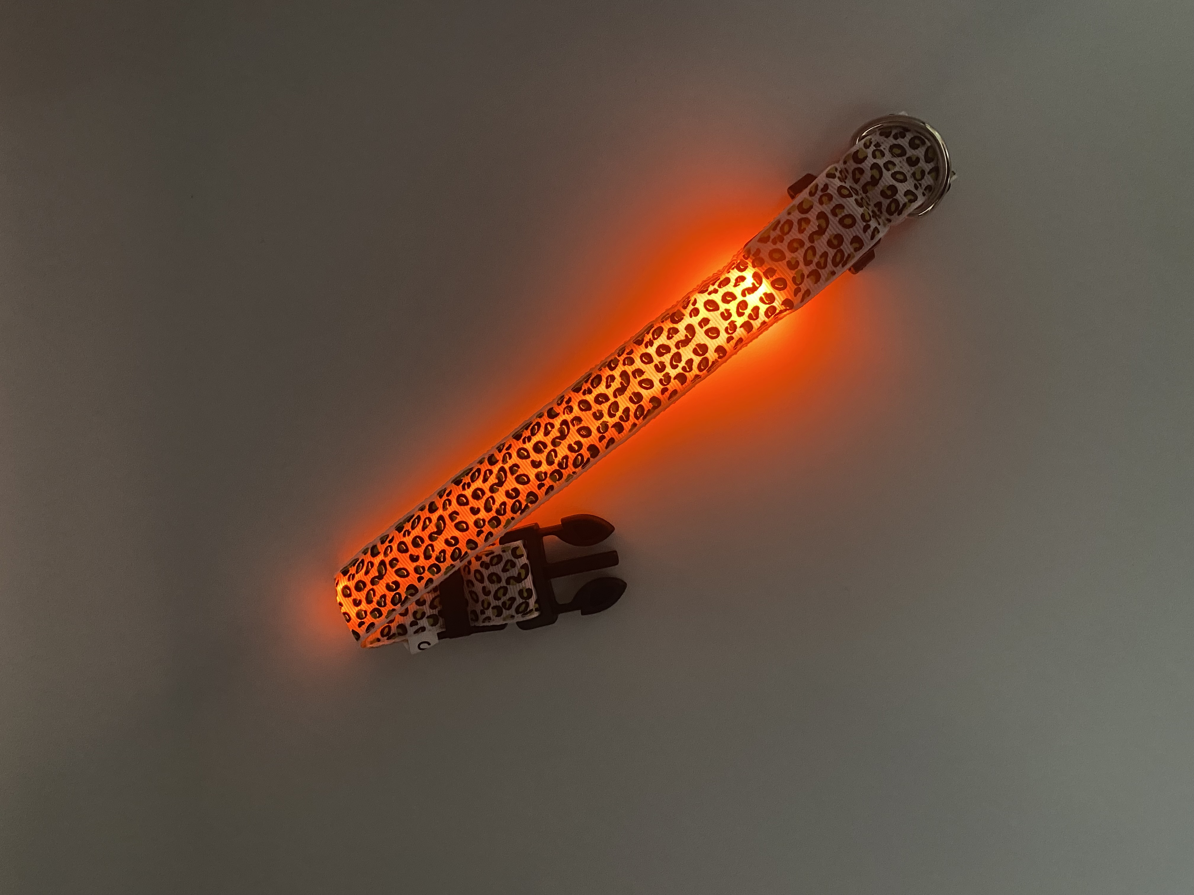 Obojek se světelným zdrojem ve formě LED zdroje. Zvyšuje bezpečnost vašeho miláčka při procházkách za snížených světelných podmínek. Maximální nastavitelná délka 63cm, minimální délka 36cm, šířka obojku 2,5cm.