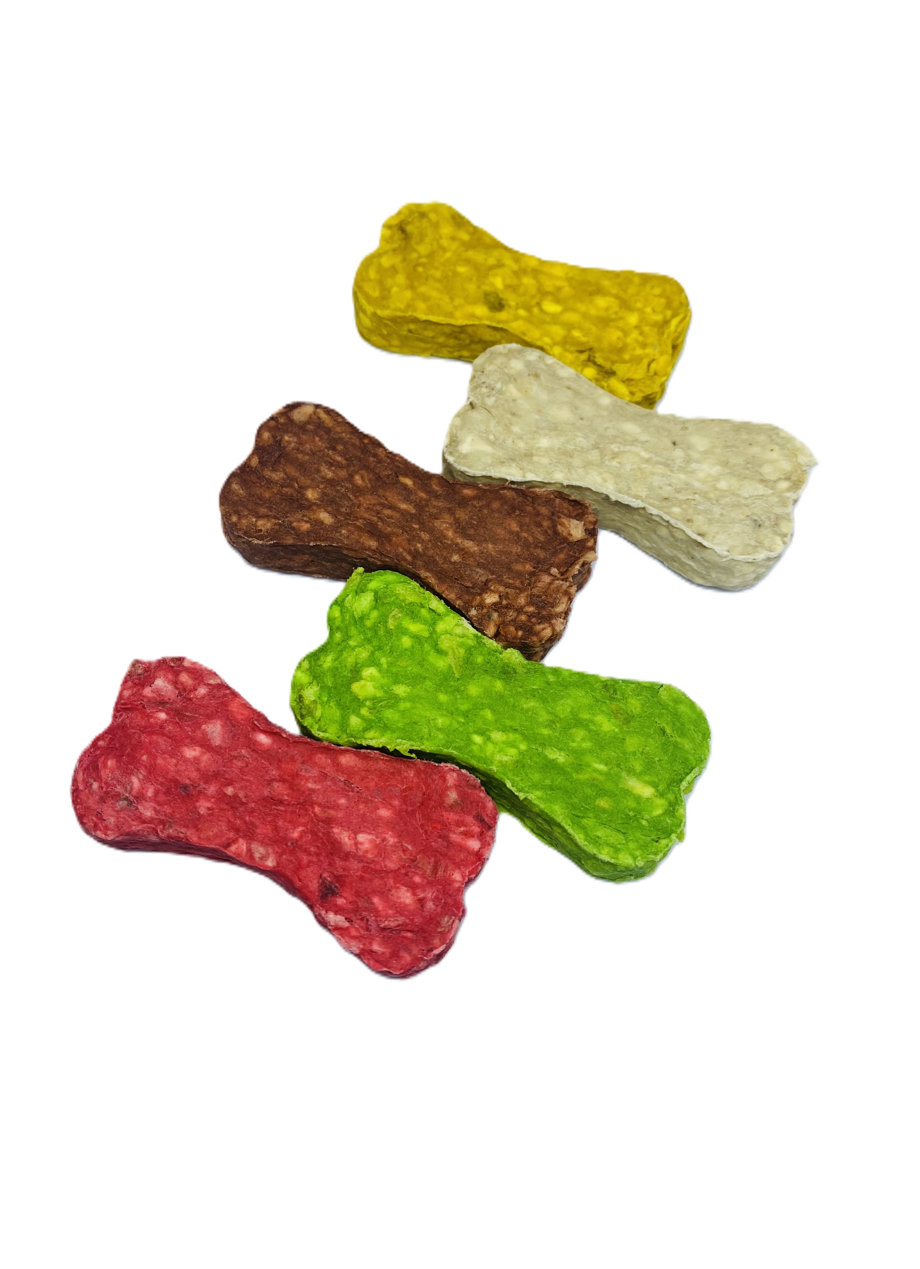 Žvýkací pochoutka pro psy z drcené bůvolí kůže.