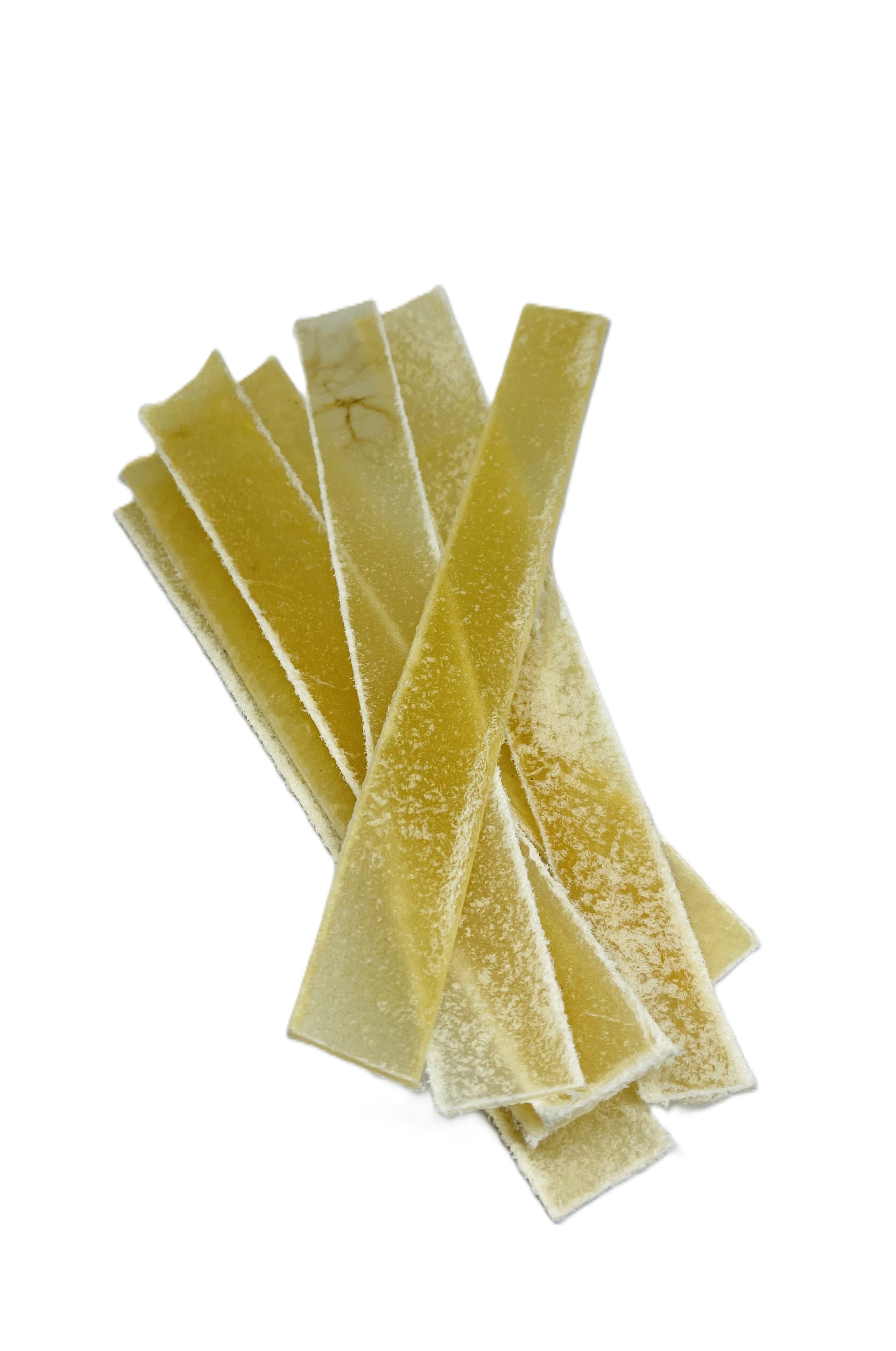 Žvýkací pochoutka pro psy ze sušené bůvolí kůže.