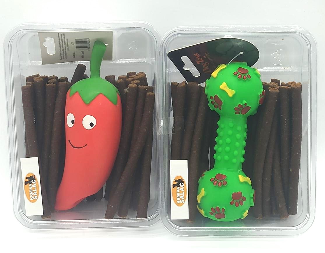 DÁRKOVÁ KRABIČKA MIX - poloměkké pamlsky 300g + hračka mix