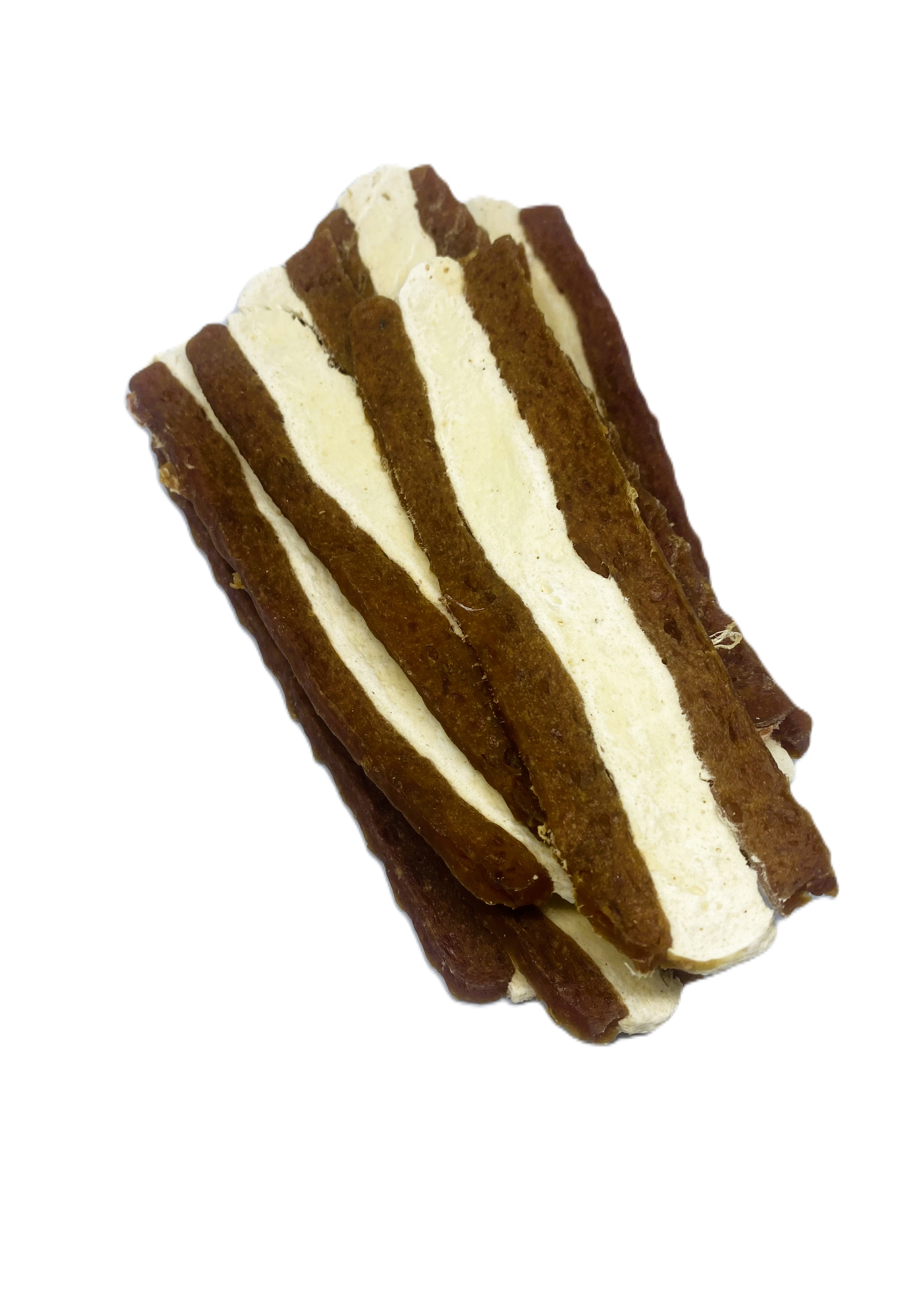 V našem sortimentu najdete ještě filety kuře/kachna/treska (kód 2942), filet z kuřecího masa a buvolí kůže (kód 2965/1), filet z jehněčího masa (kód 3065/025) a filet z hovězího masa (kód