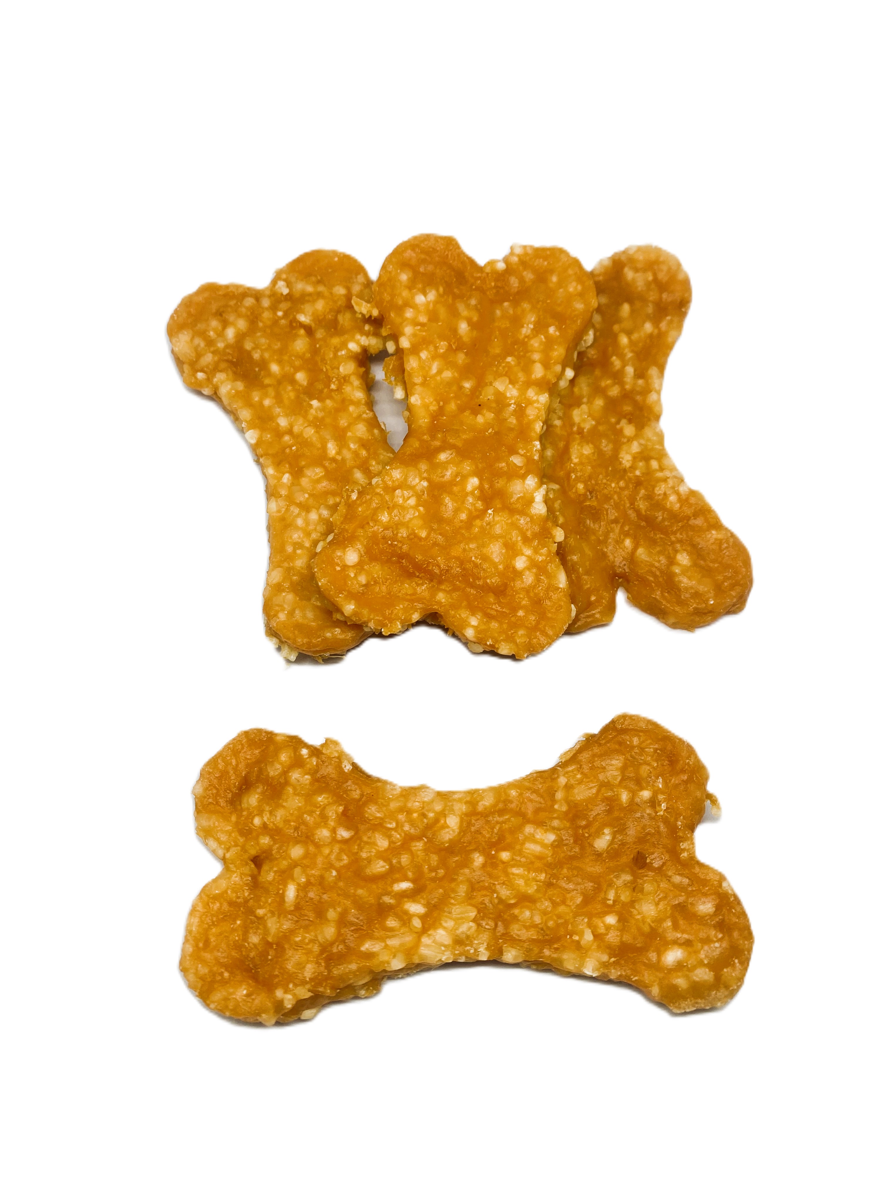 Větší měkké kuřecí kosti s rýží jsou skvělým pamlskem na žvýkání pro pejsky.