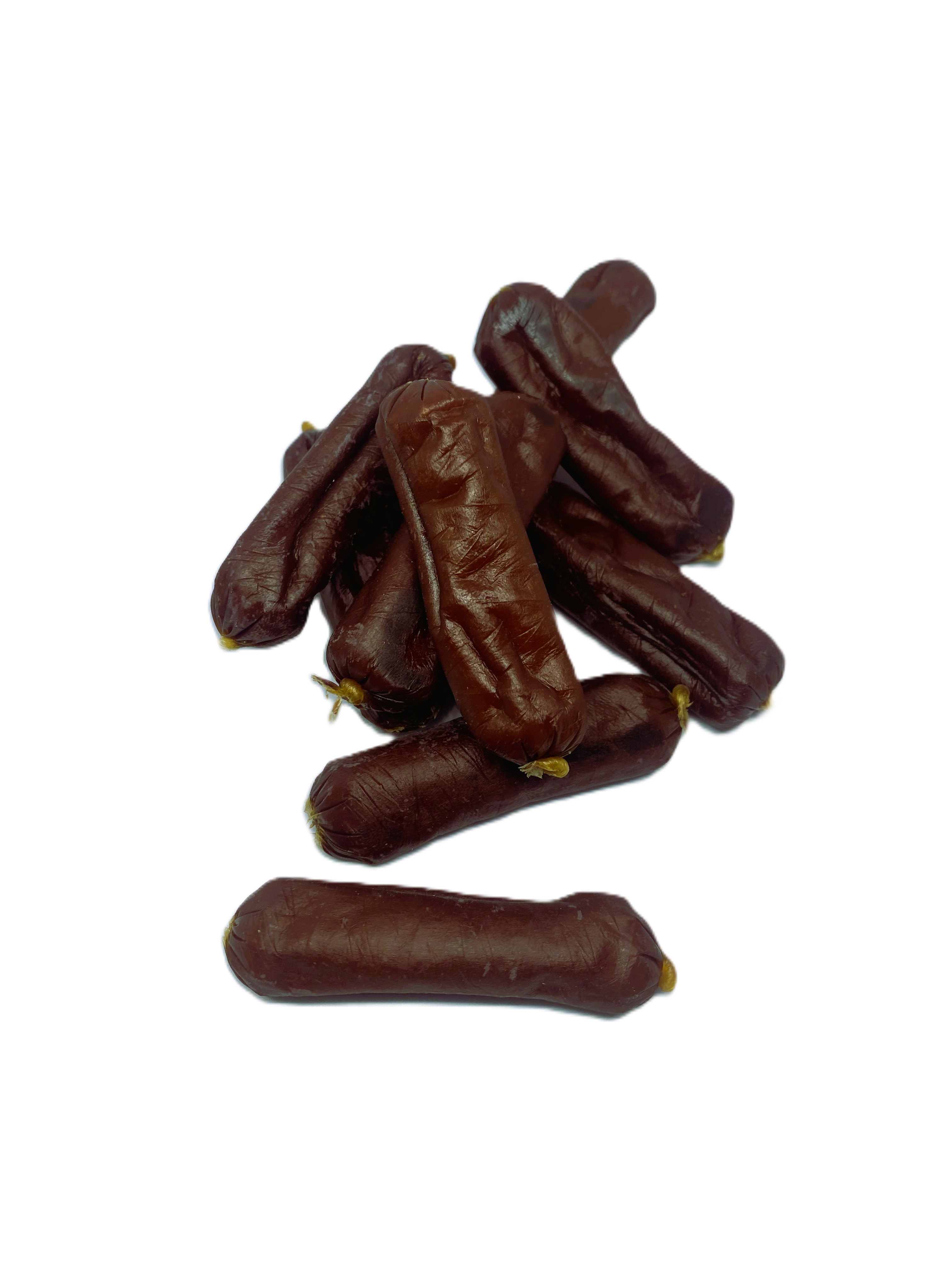 Tento pamlsek si pejsci zamilují. Měkké hovězí párečky pro malé i velké pejsky.