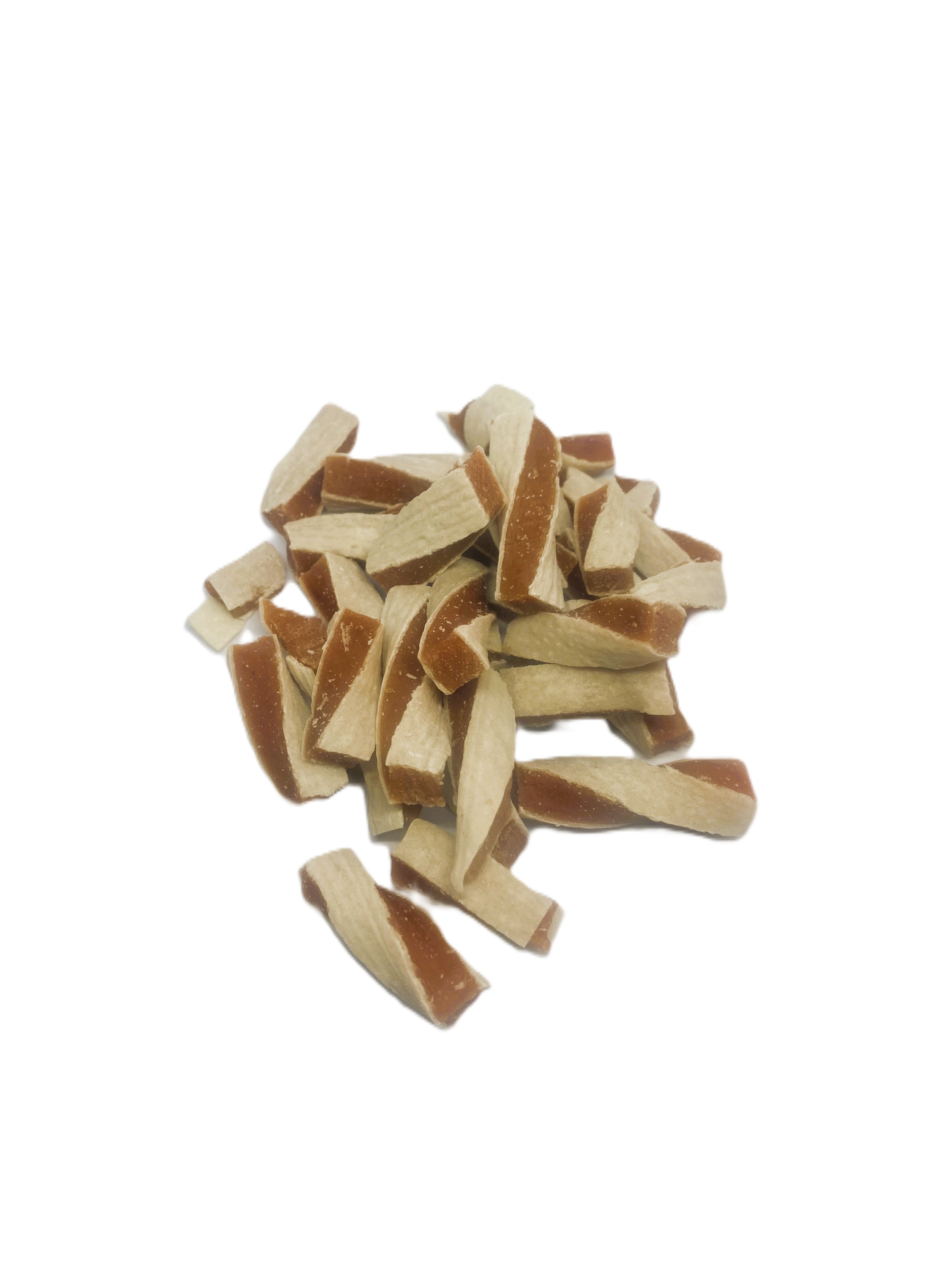 Měkoučkatý sendvič z tresky a kuřecího masa je skvělou odměnou pro každého pejska. Je sekaný na kousky.