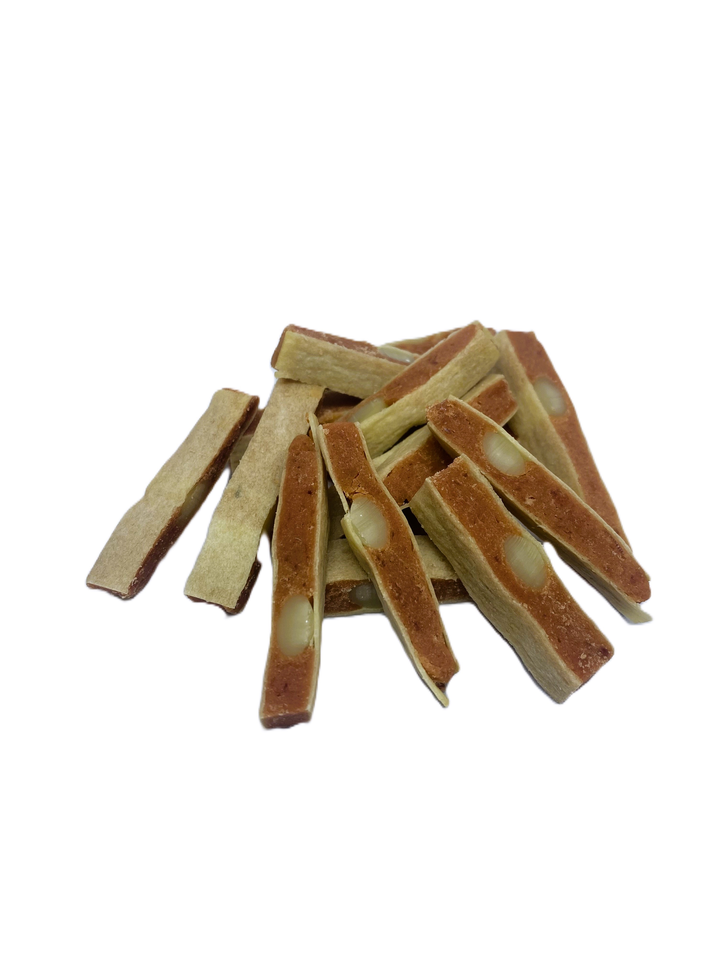 Potřebujete odměnit svého pejska něčím speciální a nevšedním? Pak je kuřecí sendvič se sýrem tou nejlepší volbou! Pamlsek je velký cca 3-4cm a snadno se láme.