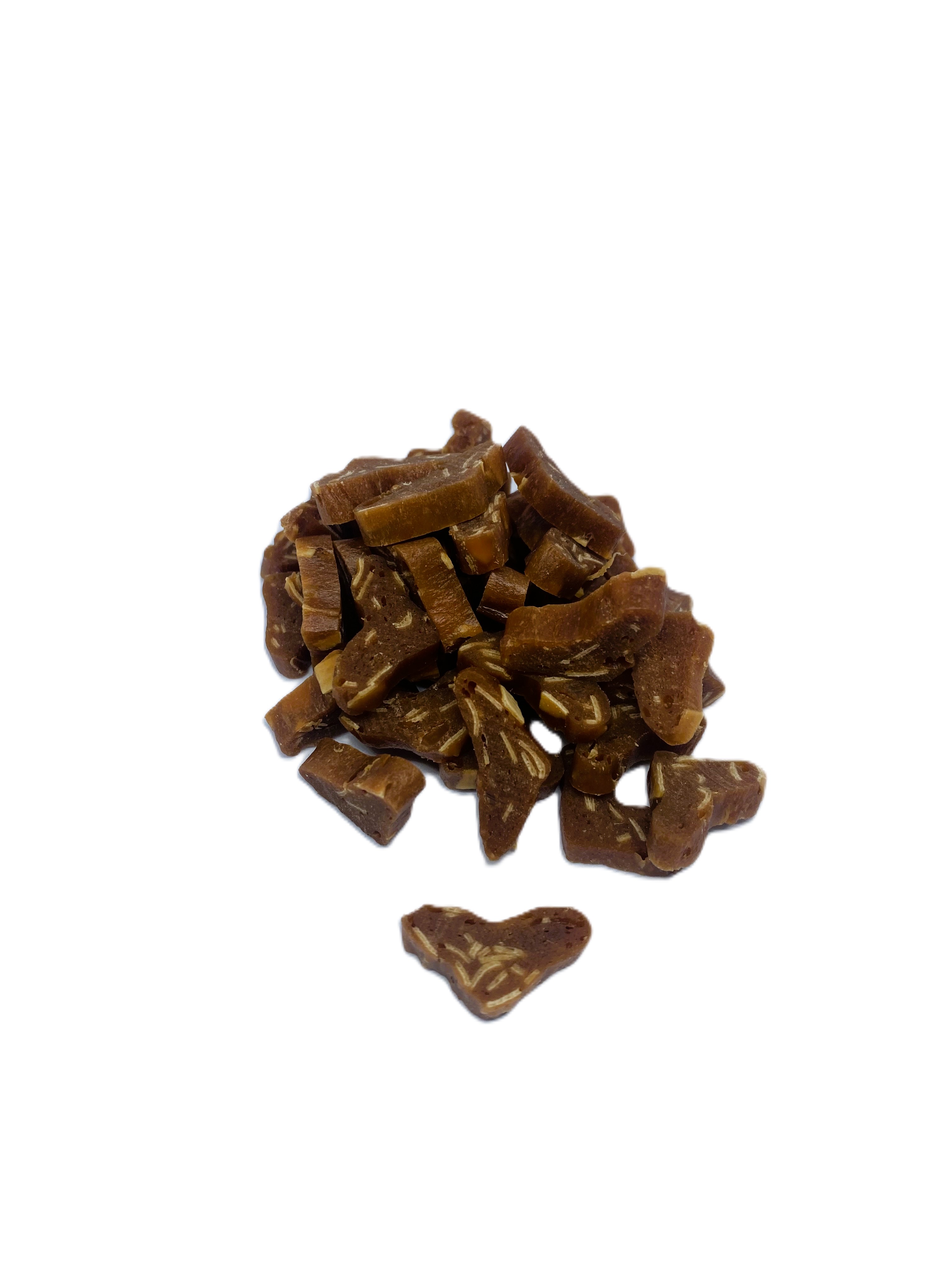 Malá srdíčka z kachního masa a tresky jsou vhodnou odměnou pro menší pejsky, kočky nebo štěňátka. Vybrat si můžete z více příchutí.