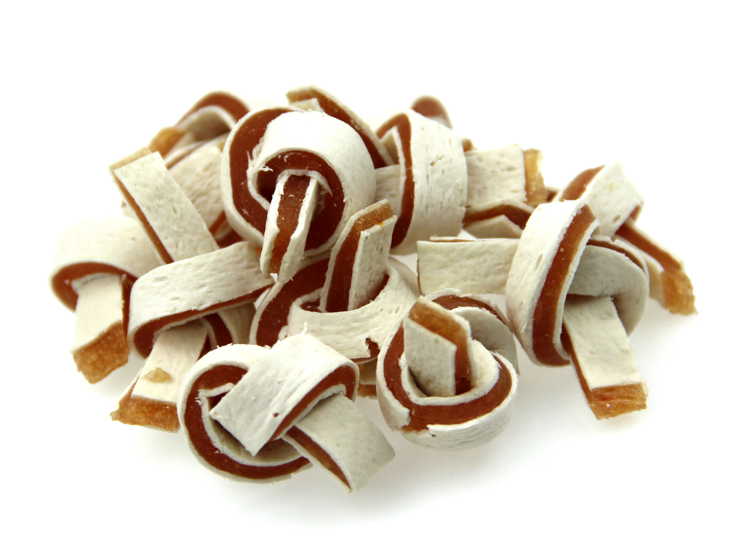 Sendvič z kuřete a tresky zabalený do maličkého uzlíčku. Chutný pamlsek pro všechny pejsky.